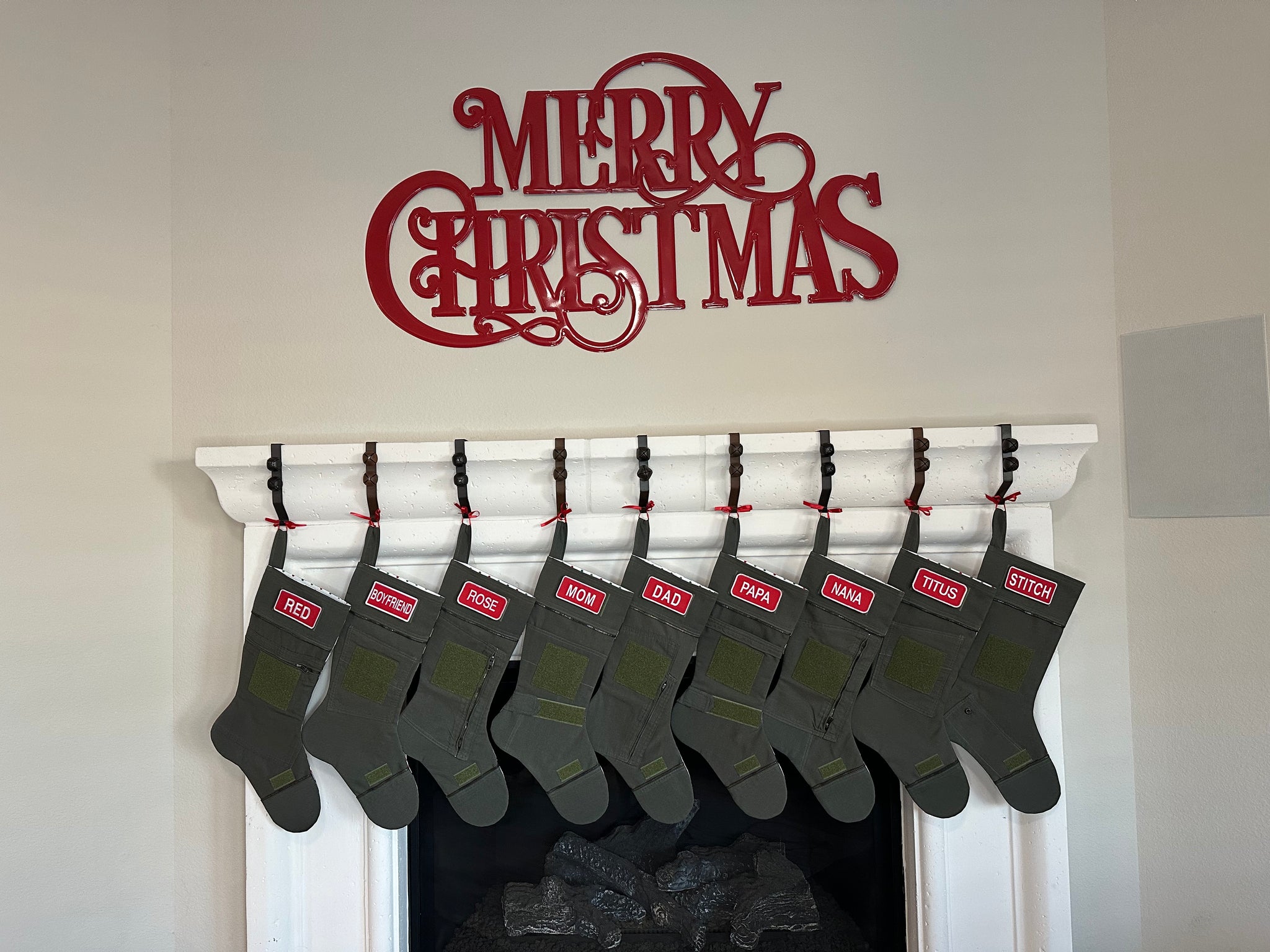 Christmas Cockpit stockings are made from actual repurposed military uniforms, not just styled to look like uniforms.  Each uniform is unique.  They are all put together just a little differently.  They wear differently.  They make interesting, one of a kind, stockings!